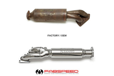 Fabspeed HJS German tri-metallic catalytic converters are State of the Art ultimate emission legal performance enhancing components. Your sports car , SUV and Truck equipped with HJS German catalytic converters is 100% Guaranteed to make more Horsepower, Torque, enhanced sports car, better fuel economy than any OEM stock catalytic converter and or ANY Illegal Cat Bypass pipe downtube. In fact, if you have any older cars, used cars and or cars with FAILING, DELETED or Butchered catalytic converters then do yourself a favor and UPGRADE your car with a set of Fabspeed HJS German high-flow trimetallic OBD2 European Certified Homologated catalytic converters. Its the Right thing to do to achieve CLEAN and GREEN Performance and leave absolutely nothing on the table for performance and sports car sound. Furthermore all the Air we breathe globally is not affected by using cat-bypass pipes or stupid solutions like Non Catted downtubes.