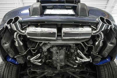 Give your 996 Turbo the sound and power it deserves with Fabspeed's Supersport RACE Performance Package! Replaces the mundane and extermely quiet factory exhaust sound with a throaty and aggressive performance exhaust note, allowing the car's true character to be heard and felt. Fabspeed's Supersport RACE Performance package adds a level of true excitement to the driving experience of the Porsche 996 Turbo by shortening the spool time of the turbos and providing quicker acceleration and improved throttle response. Cat Bypass Pipes eliminate the factory catalytic converters - offering a very aggressive tone and burbles and crackles on downshifts and during decel. Tubing diameter is increased from the factory 60mm 2.375" round O.D. size to 2.75" 70MM size for much better exhaust flow and high speed scavenging. Anything bigger than 70MM loses power and Drones terribly. Do not be fooled by bigger size tubing ". Fabspeed made 3.0" and even 3.5" and the car LOST power and sounded terrible. WE have a $650,000 CNC mandrel bender and could have Easily offered bigger BUT it did not work so why mislead Porsche enthusiasts.
